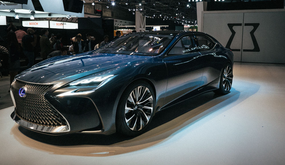 Lexus debuted the LF-FC fuel cell concept earlier this week at the Tokyo Motor Show, and we were stunned at first glance! The elongated front end makes a bold statement that works seamlessly with this bold luxury concept. The massive spindle grille pushing every other element to the very edge, the triple-L headlights embedded in a steep angle make this concept worth talking about. The side profile is set with bold, confident character lines that pinch in at the rear doors. This is flagship design at its core, with a silhouette that marks a dramatic departure from the current LS line.Straight on, the rear is dominated by taillights that start near the trunk logo and expand outward in every direction. The large mesh areas on the outer edges suggest the LFA to some degree, but the LF-FC might have been better served with an updated version of the LF-LC “afterburner” taillight design.